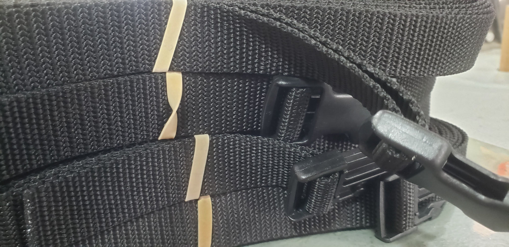 One-inch wide heavy weight UV treated polypropylene webbing boundary system. 30 x 60-ft size. The four section boundary has 1.5-inch nickel plated steel rings, box stitched on each corner. Hand winder for tangle free boundary storage. The lengths join together in middle of each web length with a plastic side-release buckle at centers. This will allow you to fine-tune court dimensions.